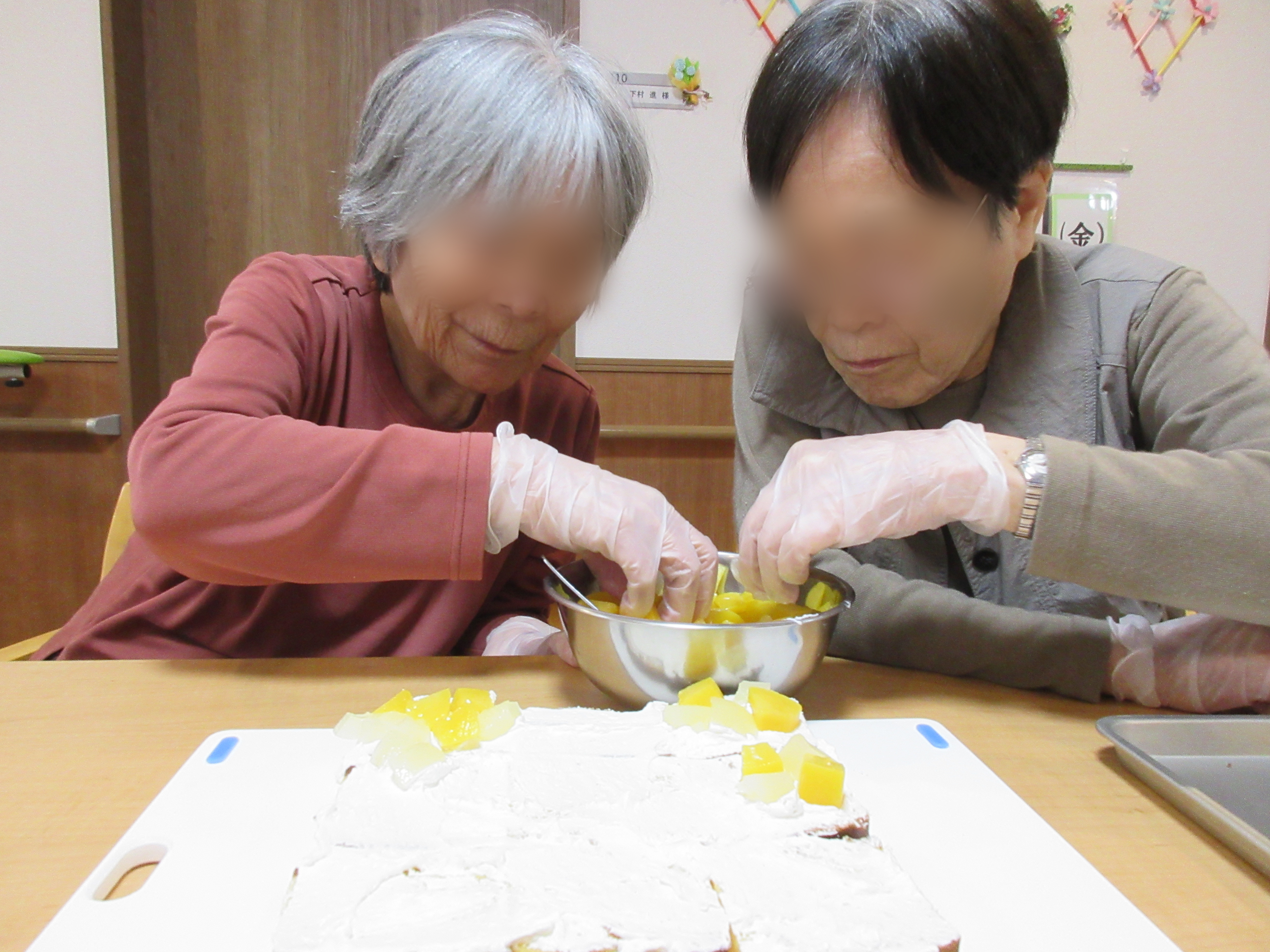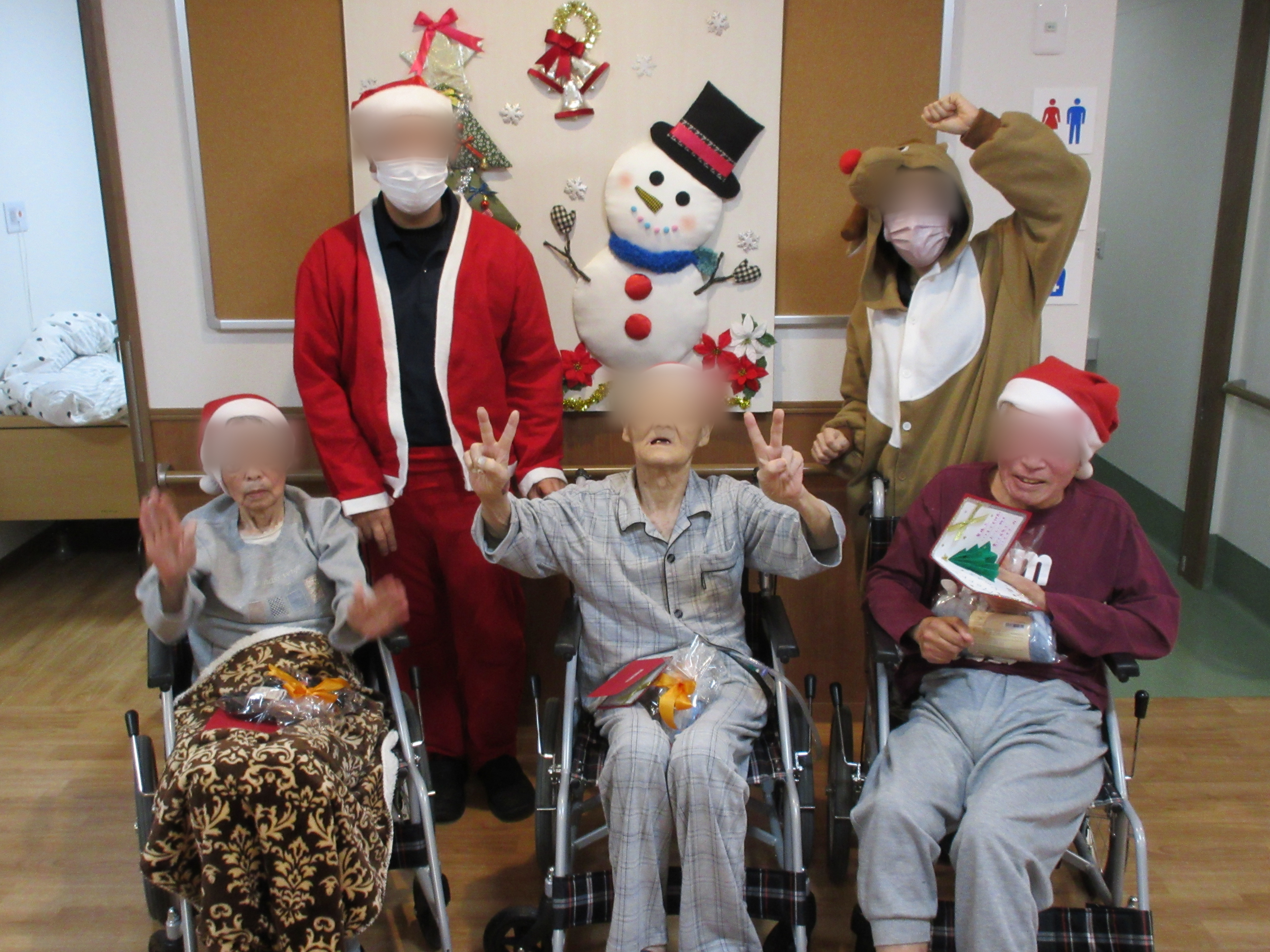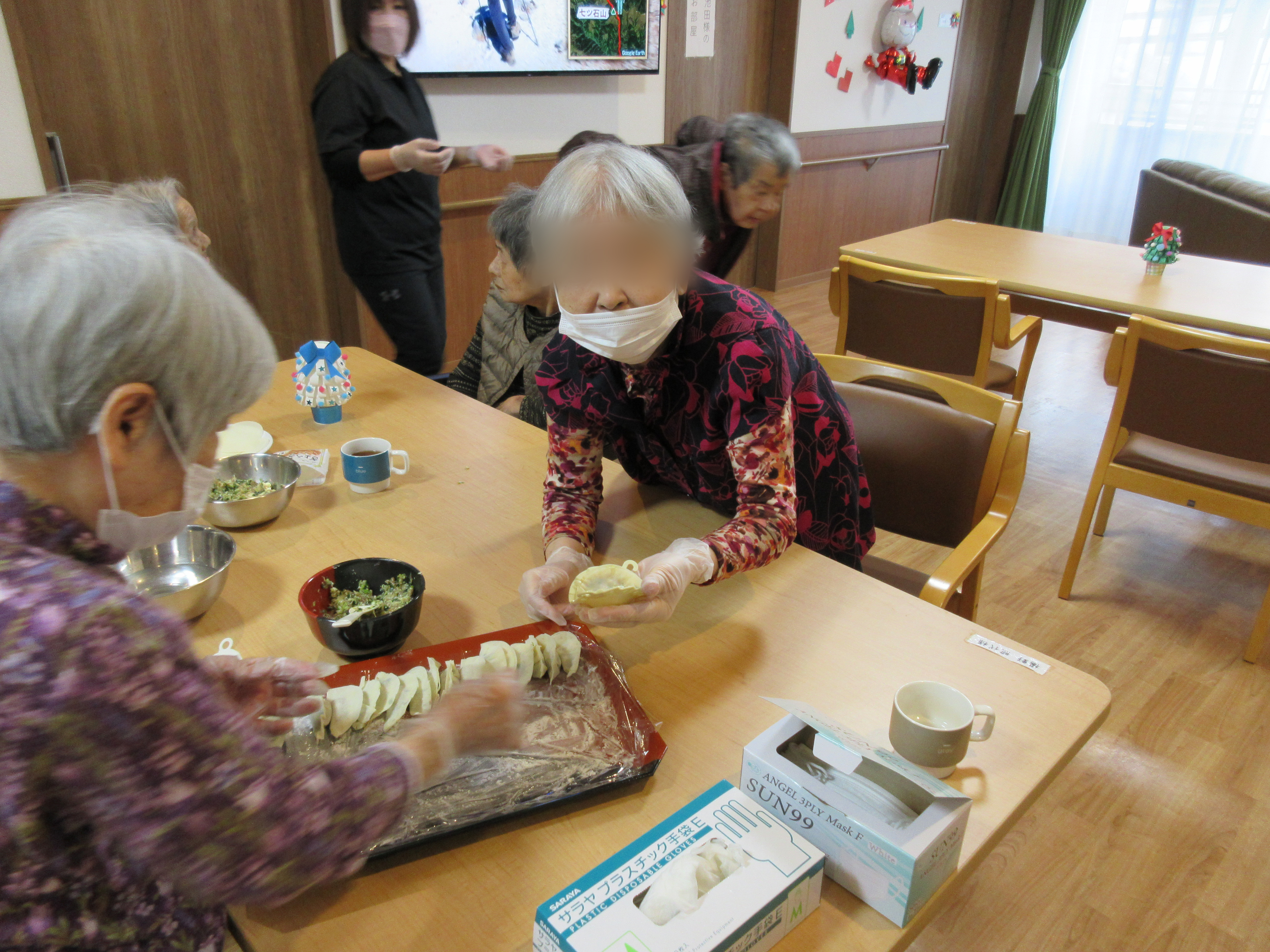 コロナ禍で無事クリスマス会を開催することが出来ました。 クリスマス料理に「かわいい💛」と喜んで頂き、ケーキ作りや餃子作りに盛り上がりました\(^o^)/ サンタクロースからのプレゼントにも皆さん喜ばれ、笑顔が溢れる楽しい時間を一緒に過ごしました(#^.^#)